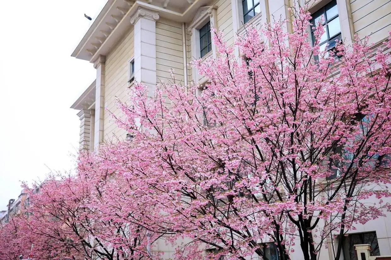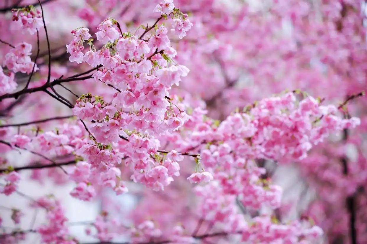 园内粉色早樱盛放,樱花大道上的樱花也即将盛放